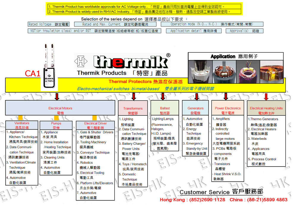 | Automatic resetting, without base insulation for high performance with connection leads |