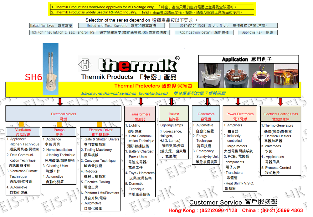 | Automatic resetting, without base insulation for high performance with connection leads |
