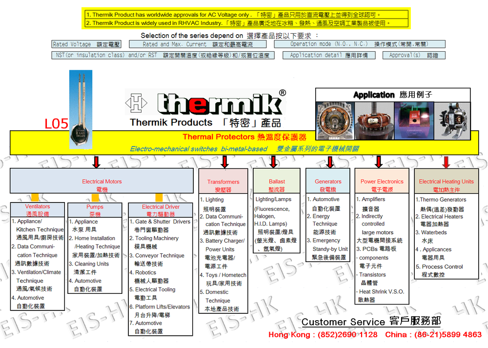 | Automatic resetting, without base insulation for high performance with connection leads |