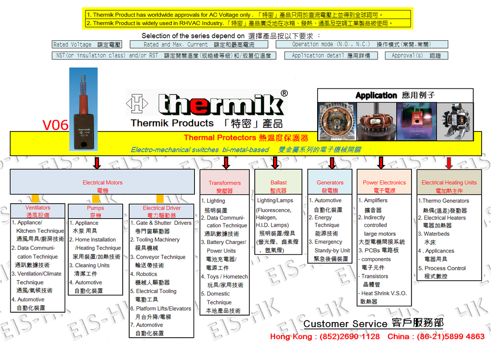 | Automatic resetting, without base insulation for high performance with connection leads |