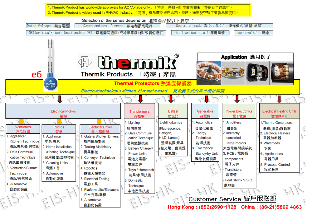 | Automatic resetting, without base insulation for high performance with connection leads |
